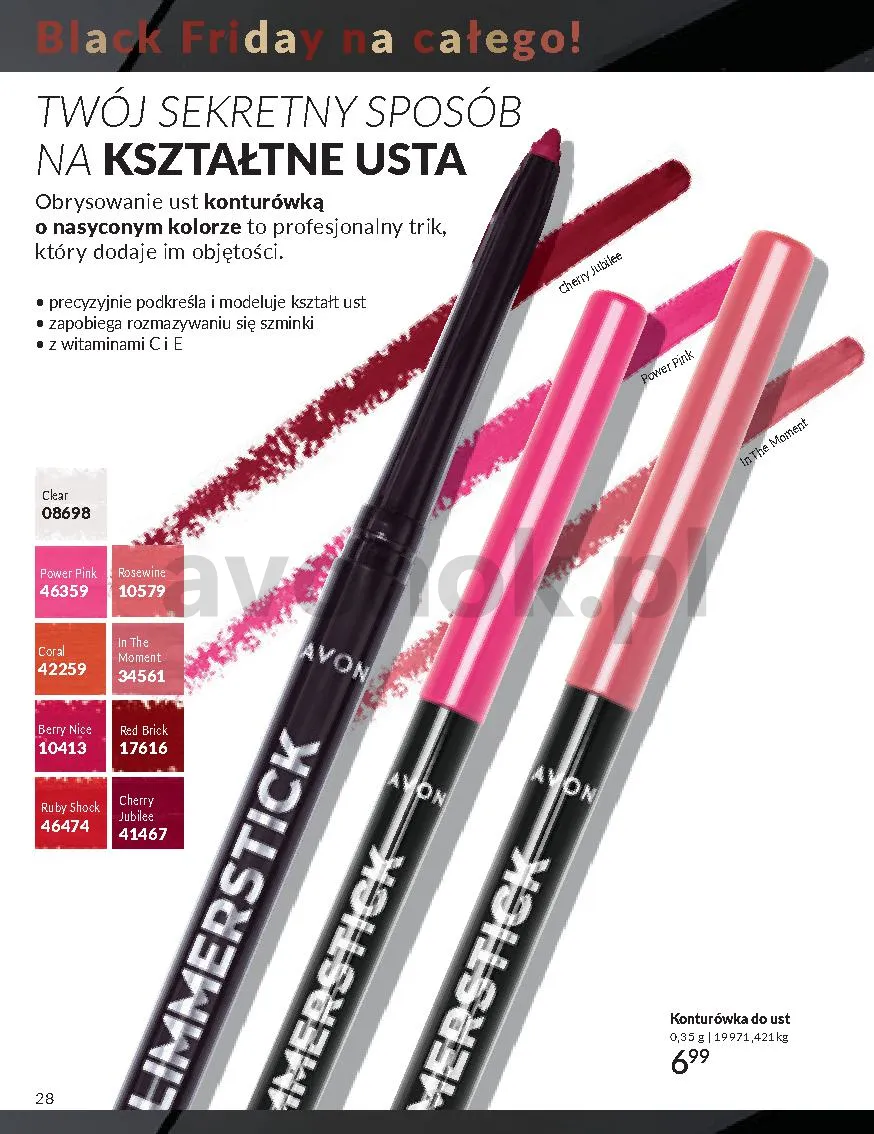 - Nowość dla makijażu – konturówki Avon Glimmerstick w odcieniach Power Pink, Coral i Cherry Jubilee, idealne do modelowania ust i dodania objętości.