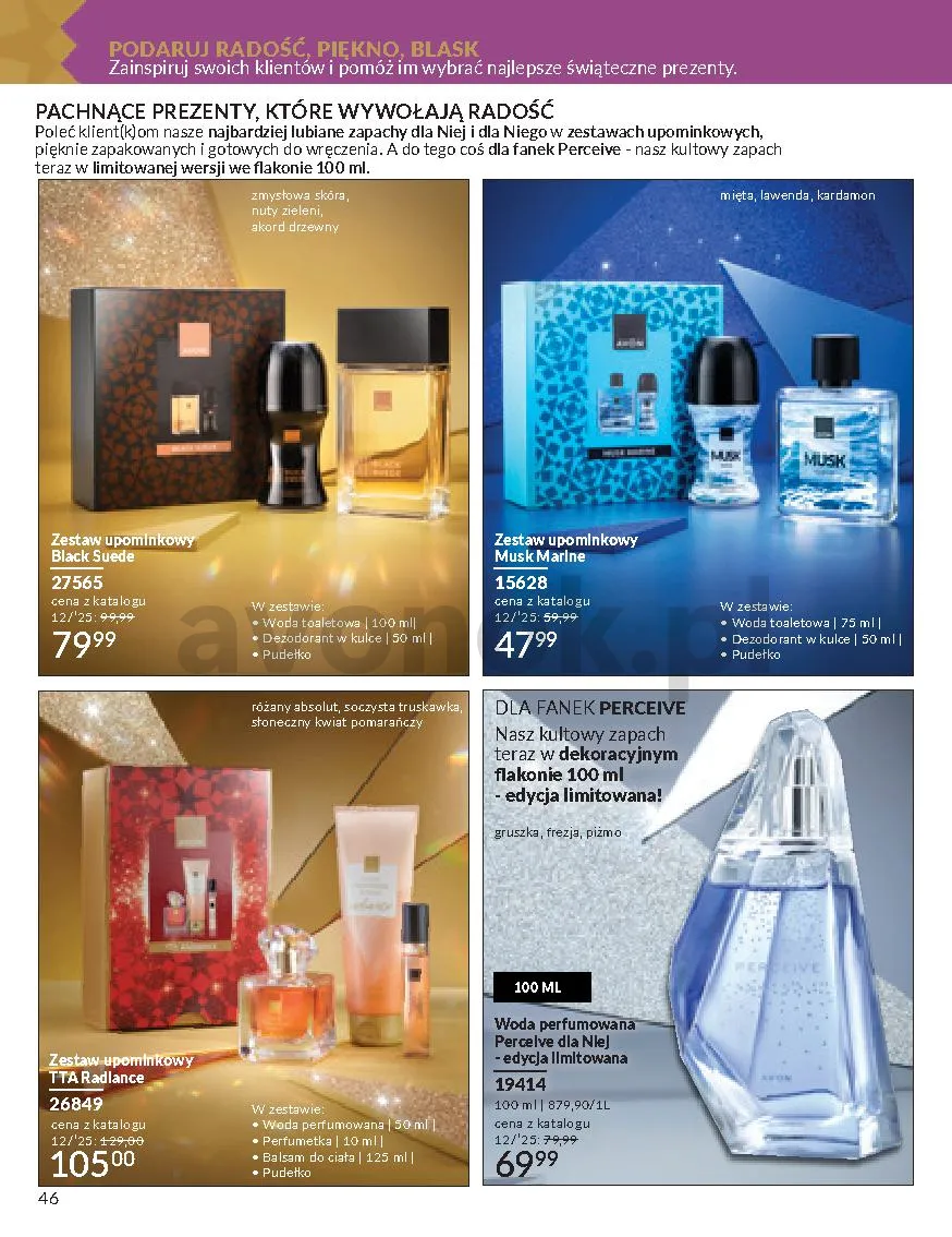 Promocja obejmuje kultowe zapachy, zestawy prezentowe i kosmetyki pielęgnacyjne. W katalogu znajdziesz m.in.: